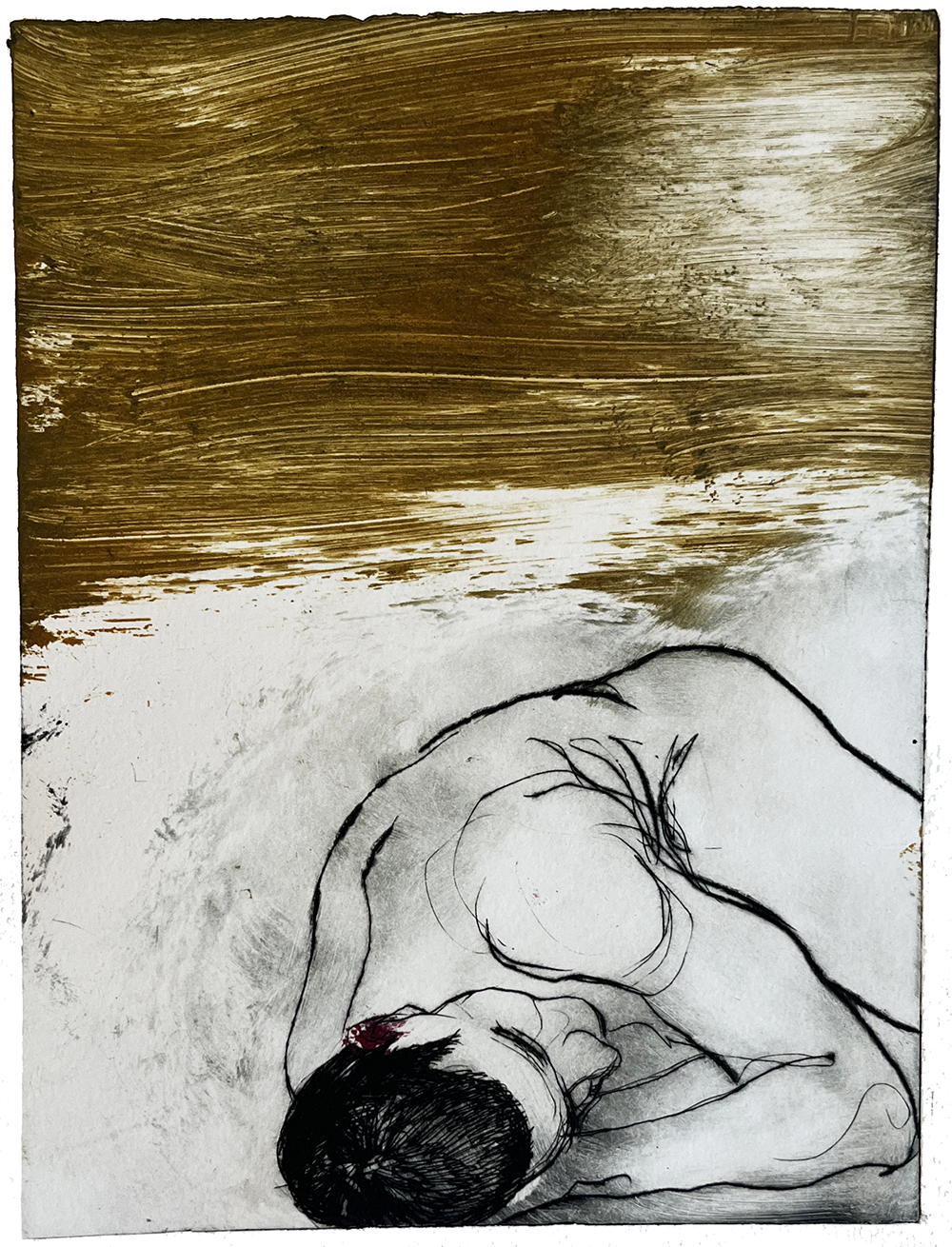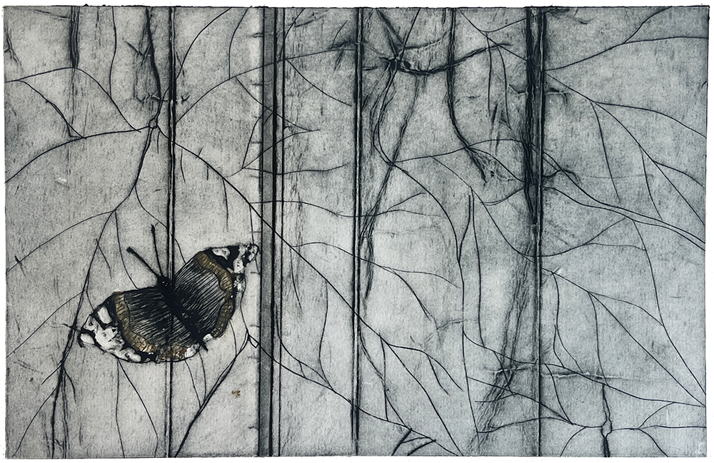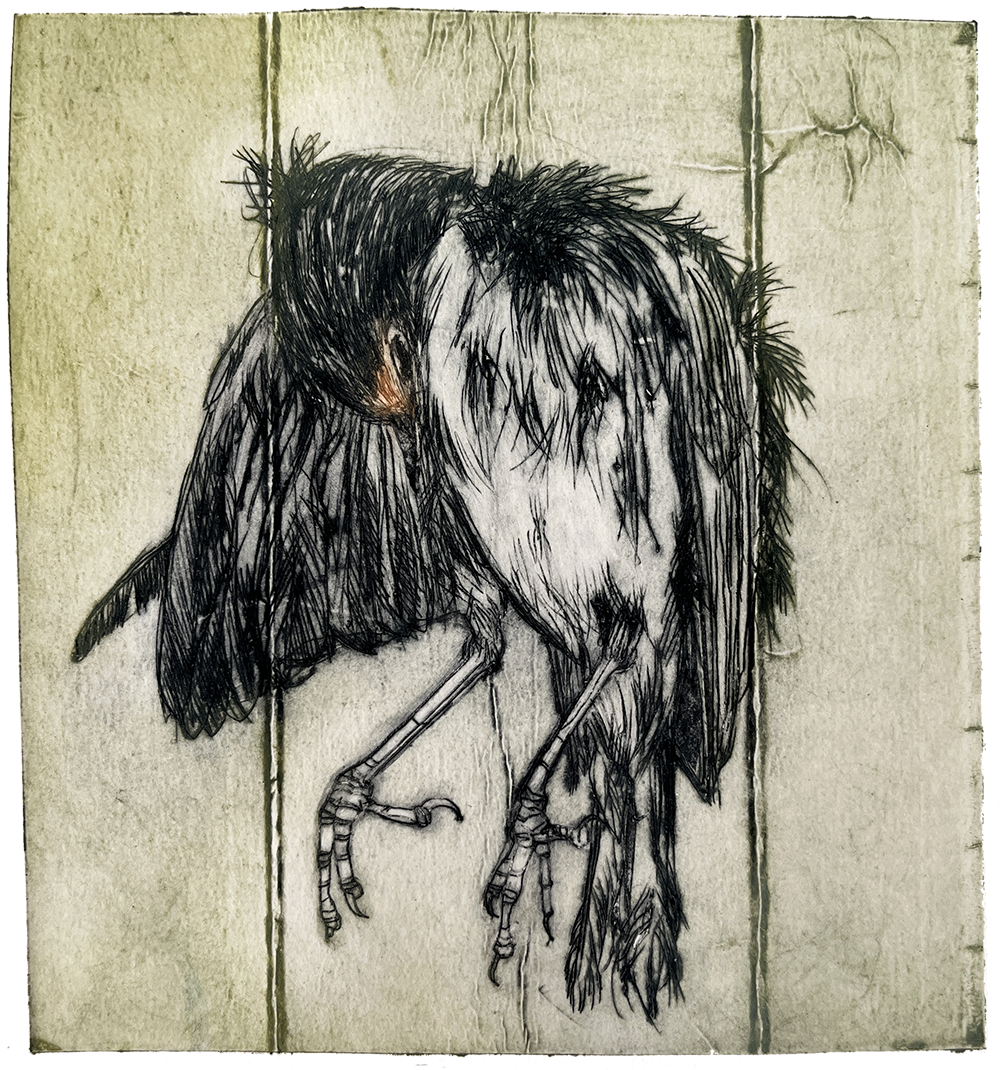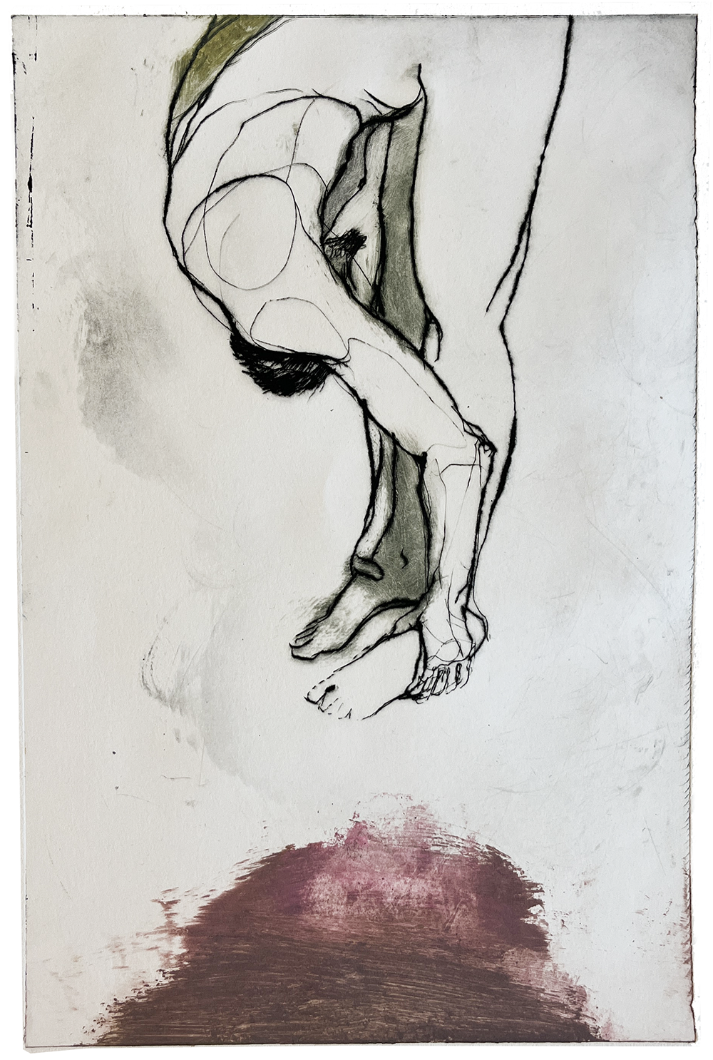 Koldnål på tetrapak. Monoprint. Fabriano Rosaspina 220 grs. Værkmål: 17 x 27 cm