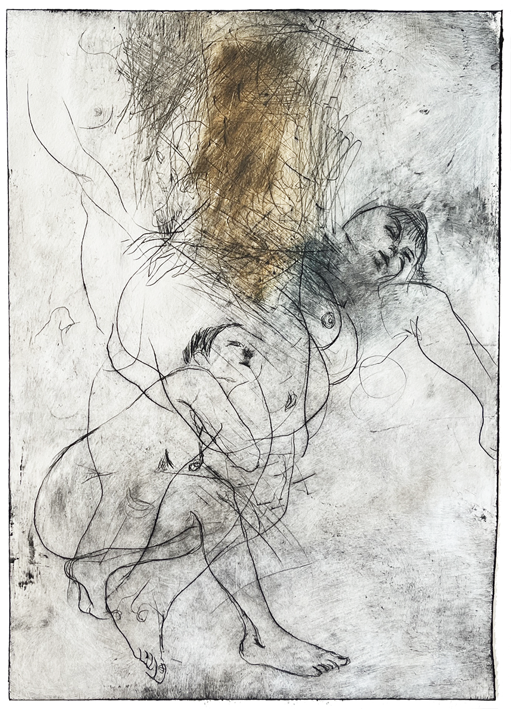 Koldnål på tetrapak. Monoprint. Fabriano Tiepolo 290 grs. Værkmål: 14,5 x 21 cm