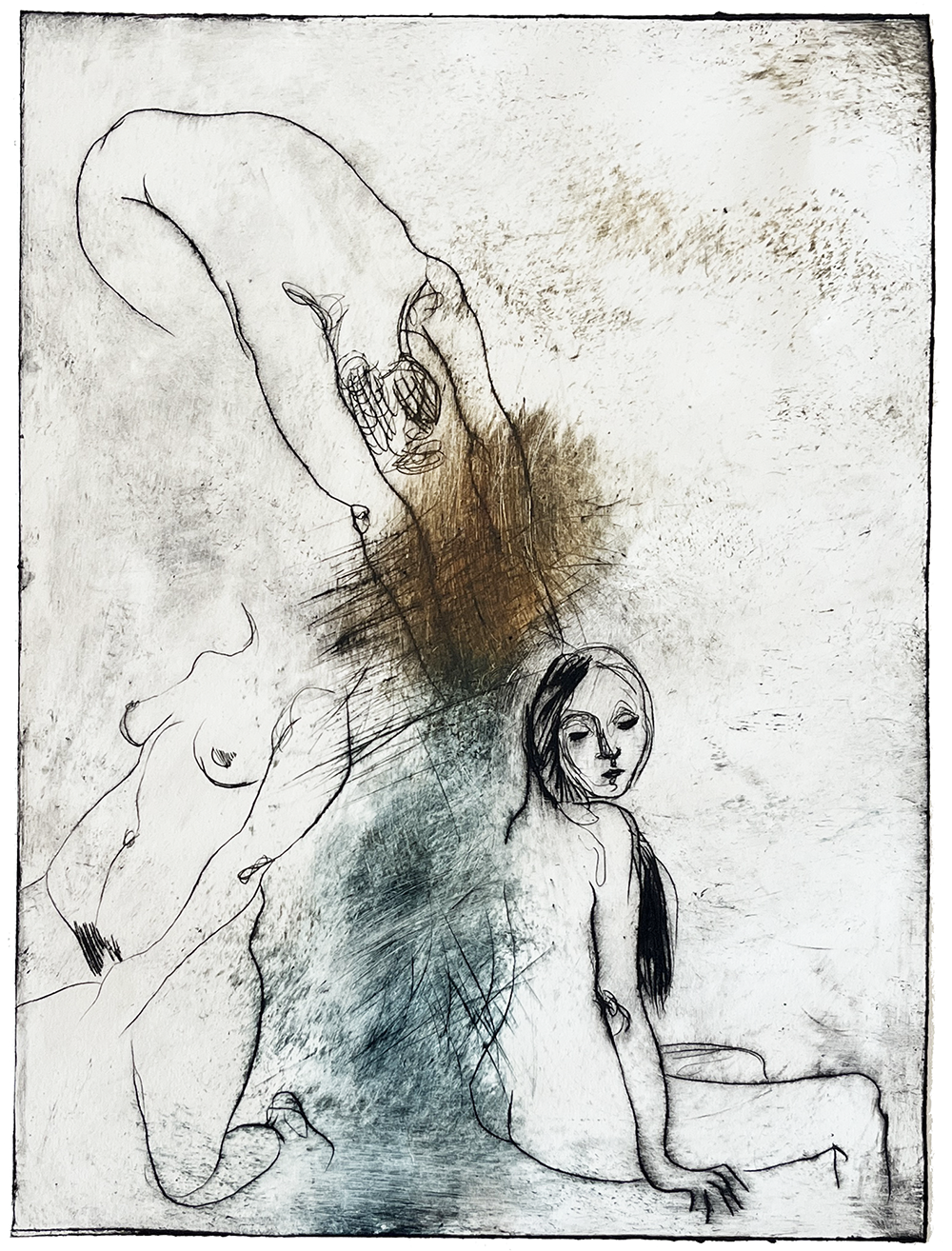 Koldnål på tetrapak. Monoprint. Fabriano Tiepolo 290 grs. Værkmål: 14 x 16 cm