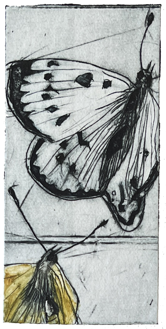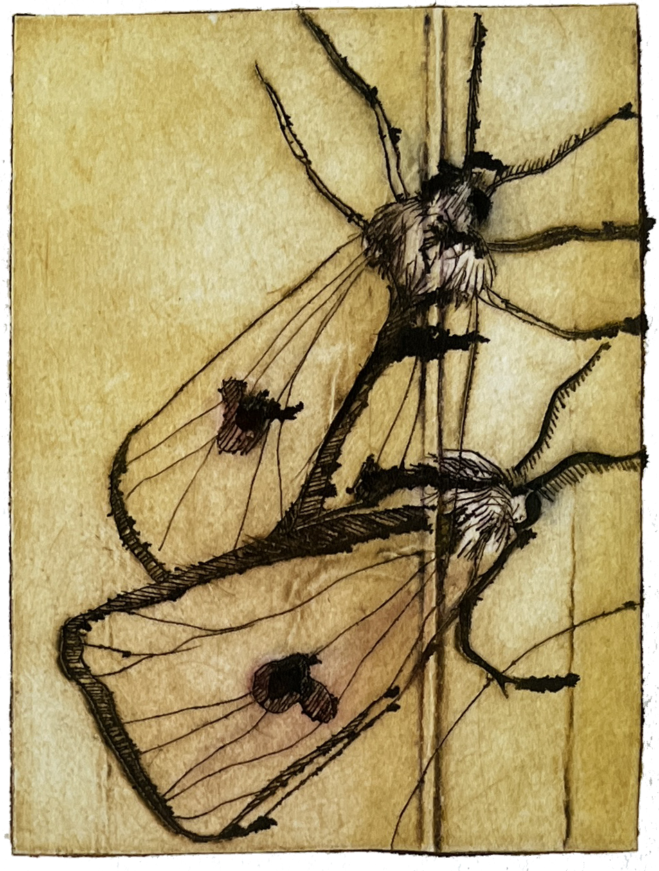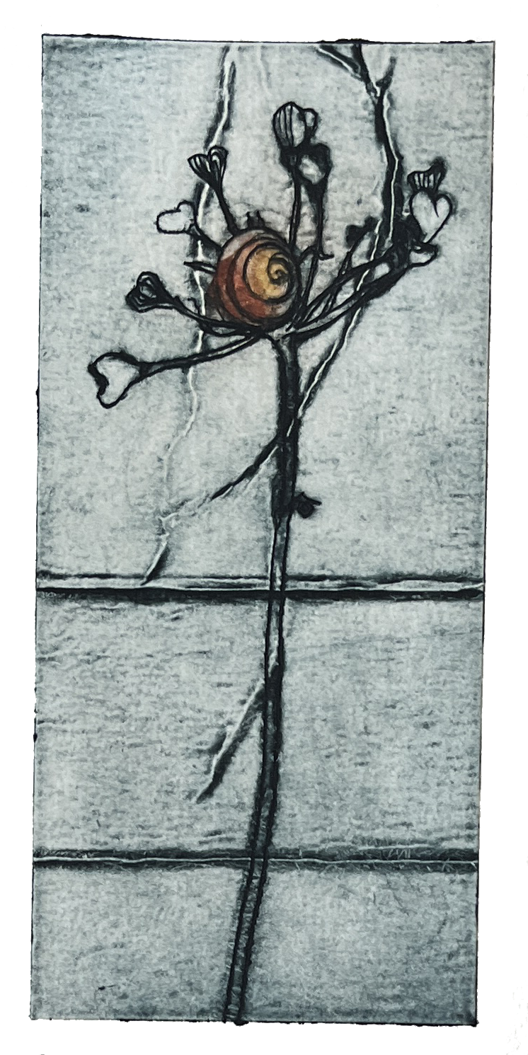 Koldnål på tetrapak. Monoprint. Fabriano Rosaspina 220 grs. Værkmål: 2 x 4,5 cm