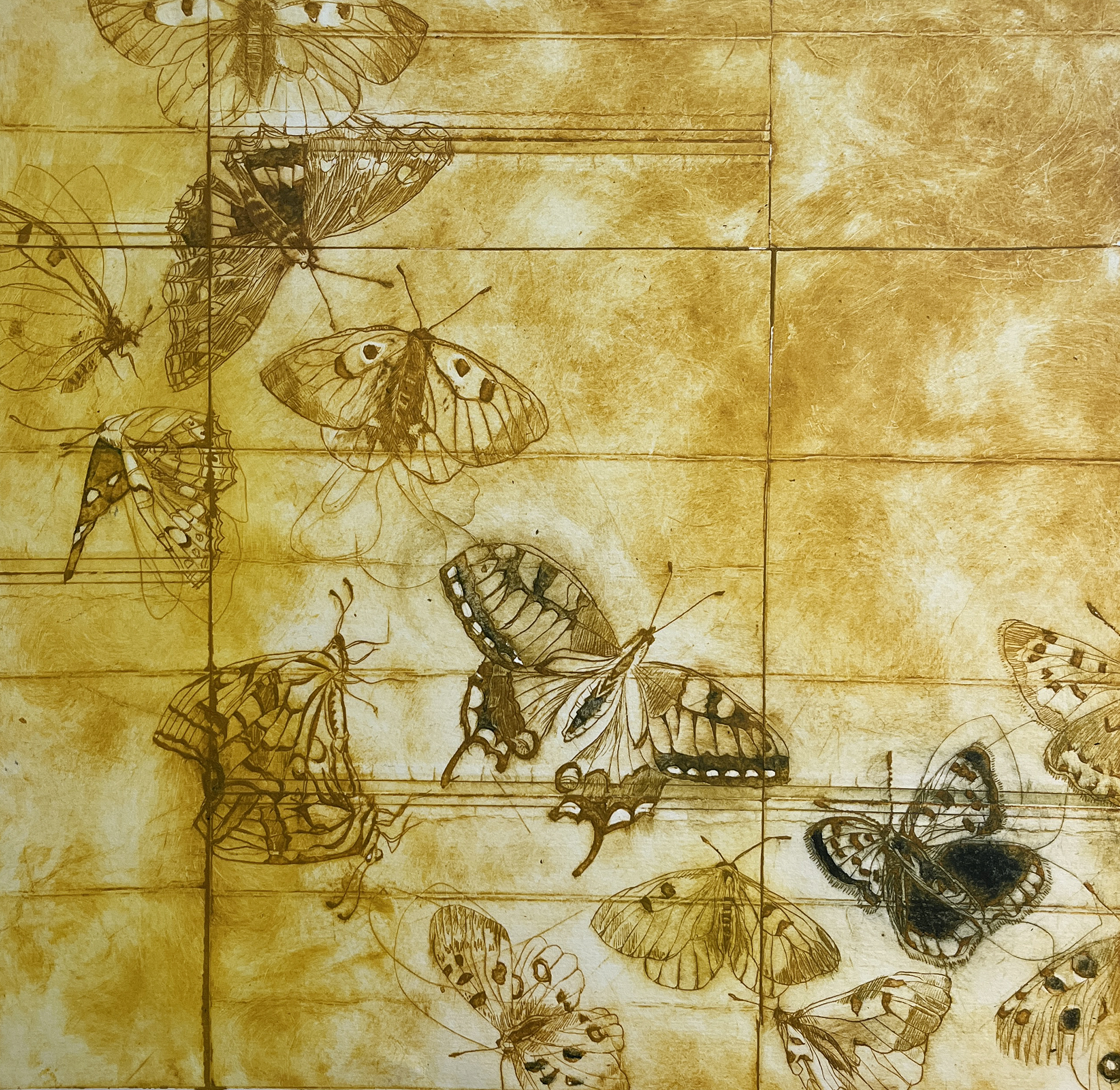 Alt er fyldt af guder II, koldnål på akrylplade, monoprint på Fabriano 220 gr., 35 x 40 cm.
