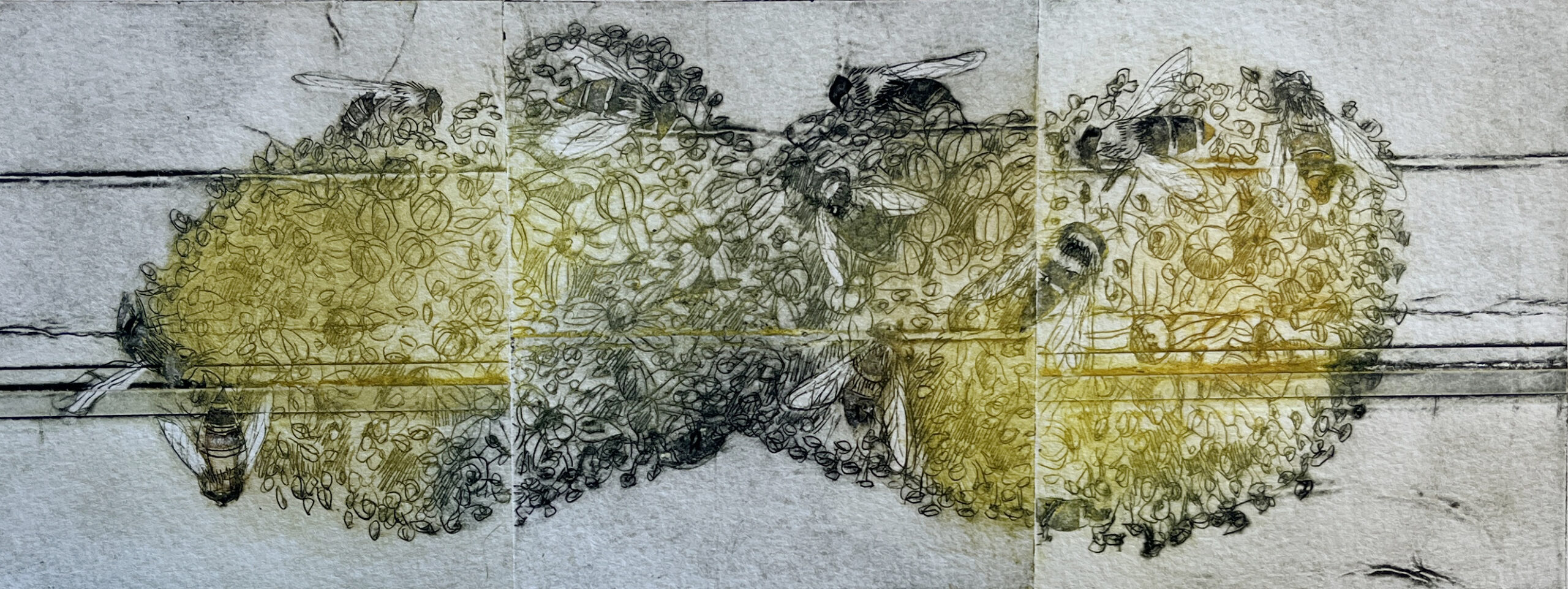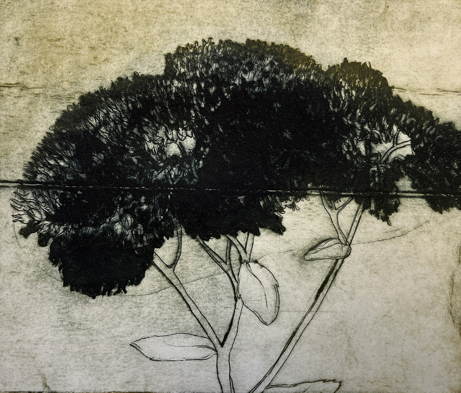 Elevation, koldnål på akrylplade, monoprint på Hahnemühle 280 gr., 19 x 30 cm.