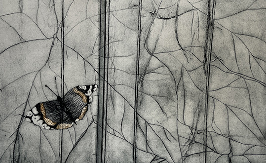 Infiltration, koldnål på akrylplade, trykt på Hahnemühle 220 g, 25 x 37 cm